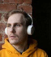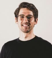 A person wearing a black shirt and red shorts walks down a narrow street lined with buildings. The warm sunlight casts long shadows on the walls. A sign with the text 'PÁLOMAR GROUP' is prominently visible on one of the buildings with a yellow facade.